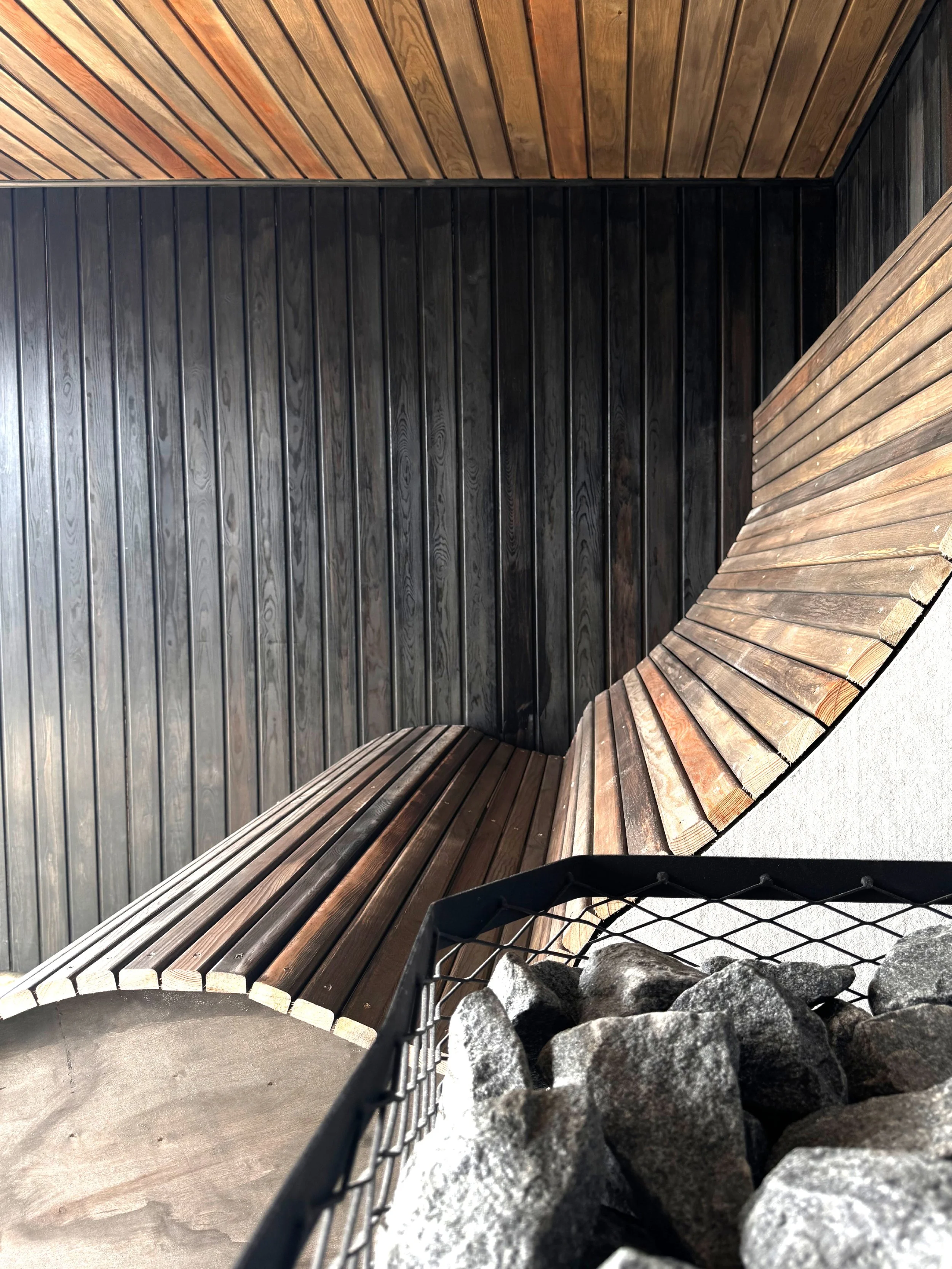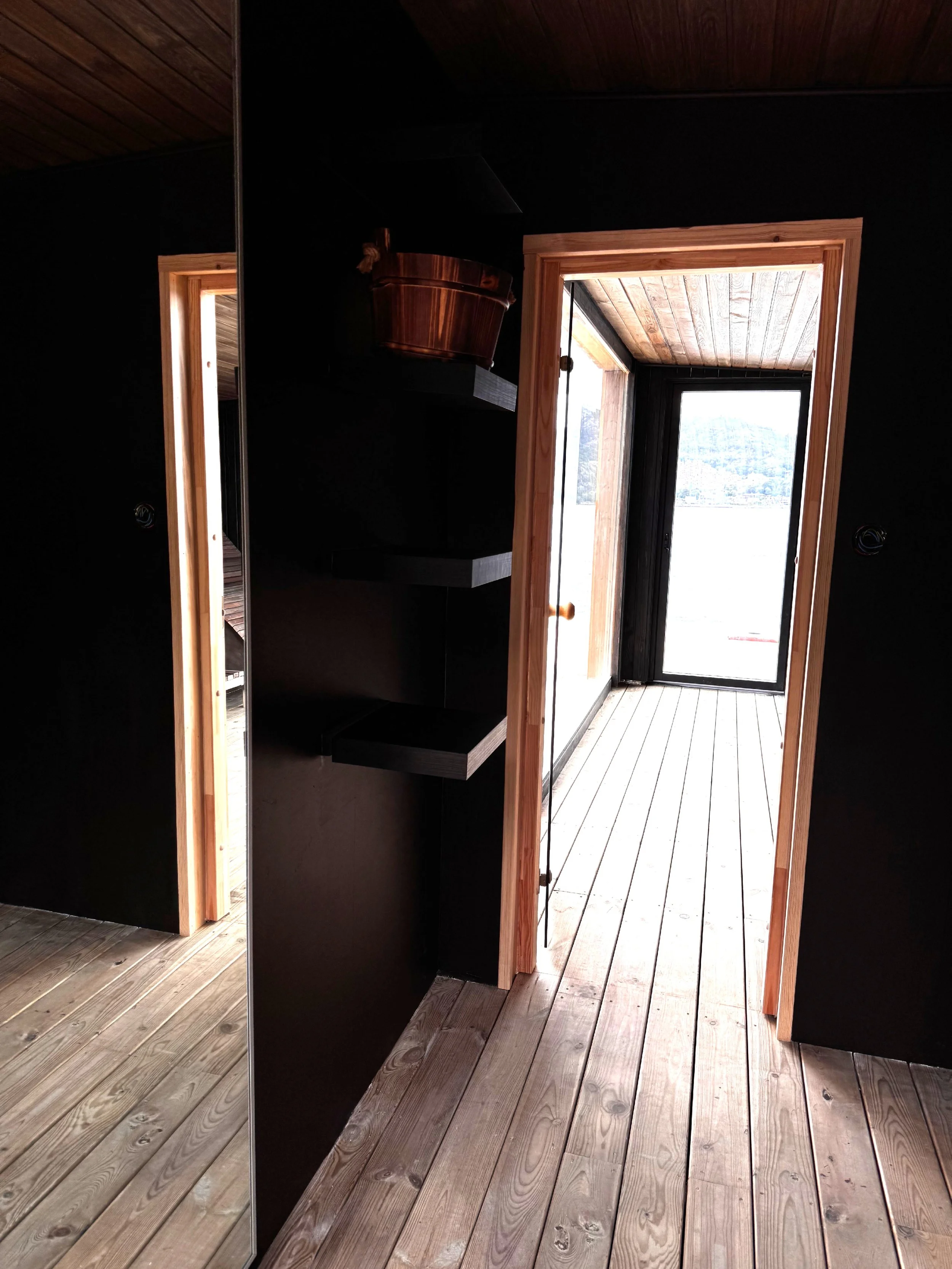 Henki er bygget i naturlige materialer som lar saunaen gli sømløst inn i landskapet. Arkitekturen er inspirert av det tidløse og ekte – designet med respekt for omgivelsene og med en nærhet til både vann og fjell.